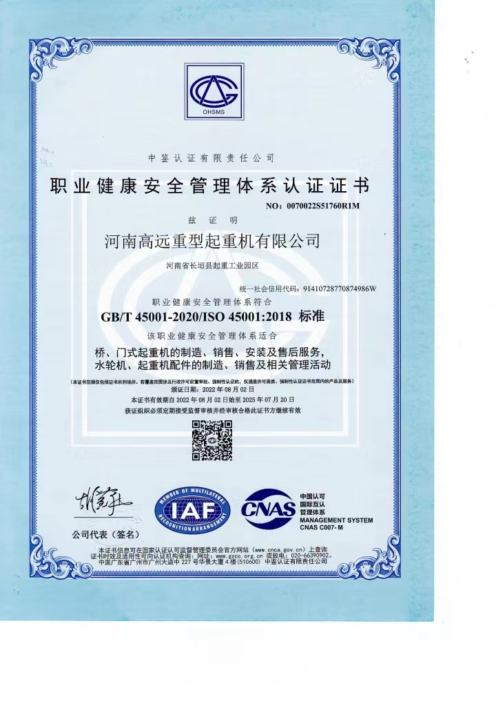 職業(yè)健康安全管理體系認(rèn)證證書(shū)